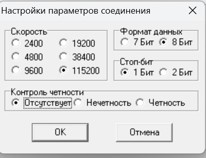 Кнопка «Настройки…» открывает окно конфигурации порта.