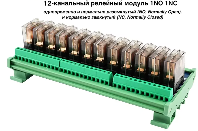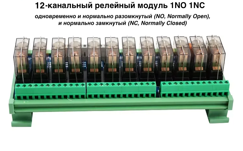 Это главное преимущество модели QJ-12H1ZE-24V. Каждое из 12 реле имеет одновременно и нормально разомкнутый (NO, Normally Open) и нормально замкнутый (NC, Normally Closed) контакт. Это позволяет: