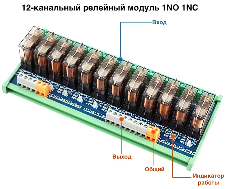 12-канальный релейный модуль — это профессиональный выбор для проектов, где требуется управление большим количеством устройств при минимальных затратах на монтаж и пространство.