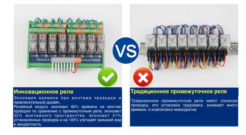 Преимущество — наличие NO и NC контактов на каждом реле, что предоставляет нестандартную гибкость при проектировании систем управления.